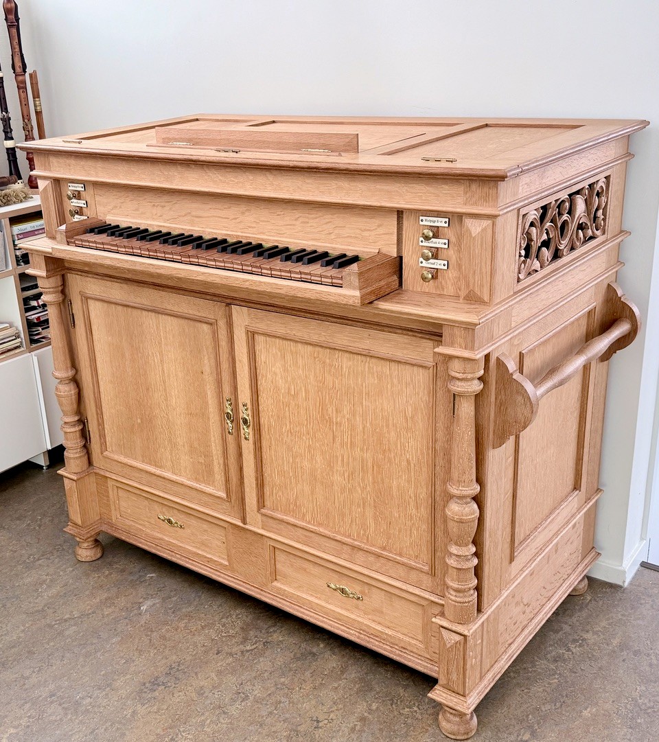 Dit positief orgel is een veelzijdig instrument, geschikt als huisorgel voor een ruime kamer, als koororgel of voor gebruik bij concerten. Het instrument is met zorg vervaardigd en biedt een klank die zich uitstekend leent voor zowel continuo- als solospel. De transpositie en registratiemogelijkheden maken het bijzonder geschikt voor barokrepertoire en gebruik in ensembles. Het orgel heb ik onder andere bespeeld bij een uitvoering van de Matthäus-Passie, waarbij de klank en speelbaarheid zeer gewaardeerd werden. Aanvullende foto's en een video-impressie van de uitvoering zijn op verzoek beschikbaar.
