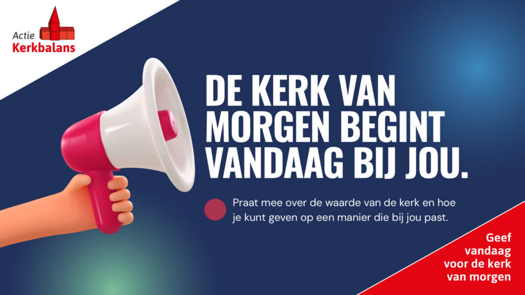 Actie Kerkbalans 2026 loopt van 10 tot en met 24 januari 2026. Het is dé actie waarmee kerkleden in heel Nederland worden gevraagd om een financiële bijdrage toe te zeggen voor hun plaatselijke parochie of gemeente. De slogan van de Actie Kerkbalans is ‘Geef vandaag voor de kerk van morgen.’ Want kerken willen ook voor de generaties die komen van betekenis zijn. Wanneer kerkleden vandaag geven, kan de kerk ook in de toekomst blijven doen waar ze al eeuwenlang voor staat: omzien naar elkaar.